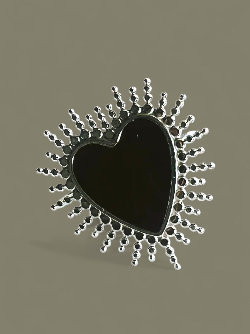 El anillo Eos está hecho de acero plateado y presenta un diseño de un corazón, de un estilo fuerte que le da un toque único. Perfecto para quienes buscan un accesorio con carácter, este anillo aporta un aire roquero y rebelde a cualquier look. Ajustable a cualquier tamaño.