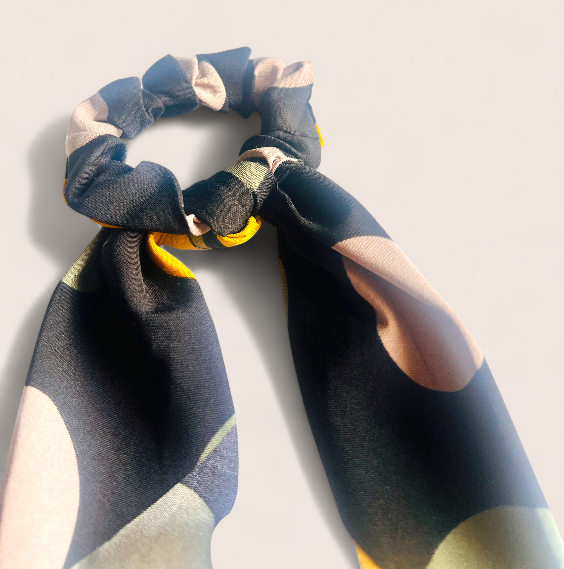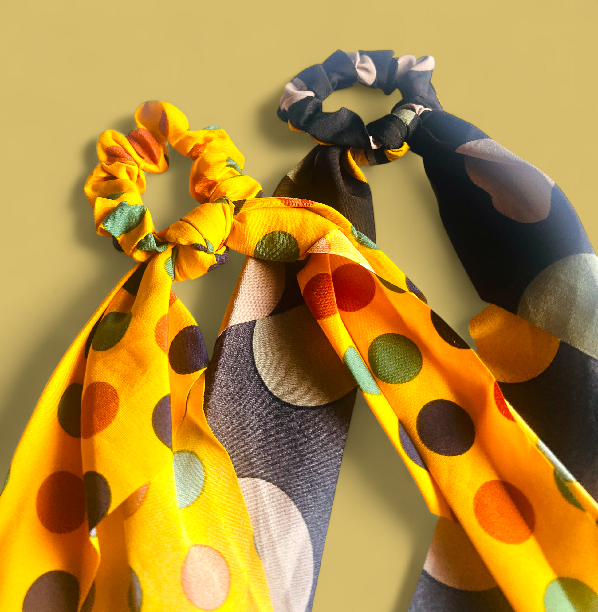 Negro con topos verde oliva y mostaza