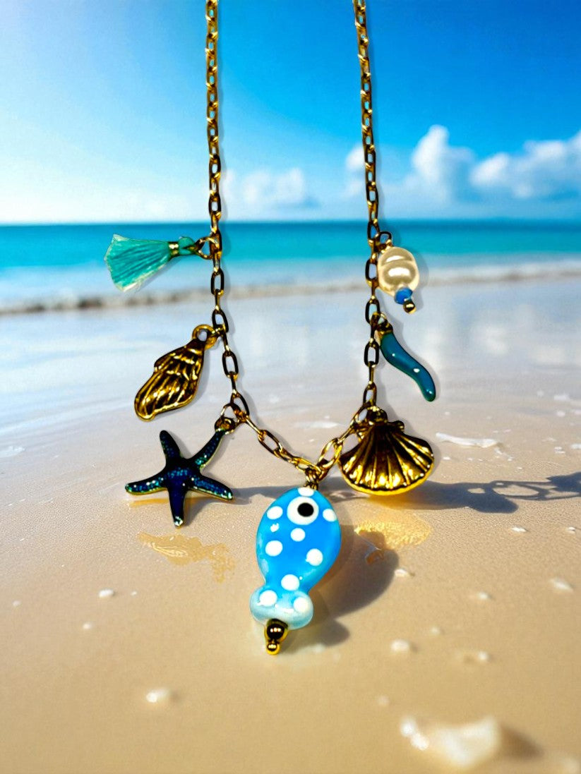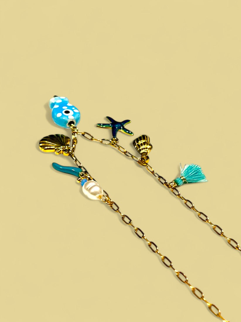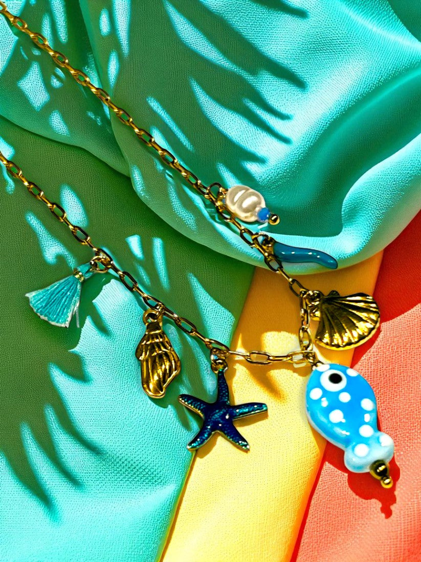 Un collar lleno de carácter y frescura, perfecto para darle un toque único a cualquier look. Este collar de acero dorado combina una serie de charms divertidos que te harán destacar. Disponible en tres colores vibrantes: rojo, naranja y azul claro. ¡Elige el que más te guste y añade un toque especial a tu estilo!