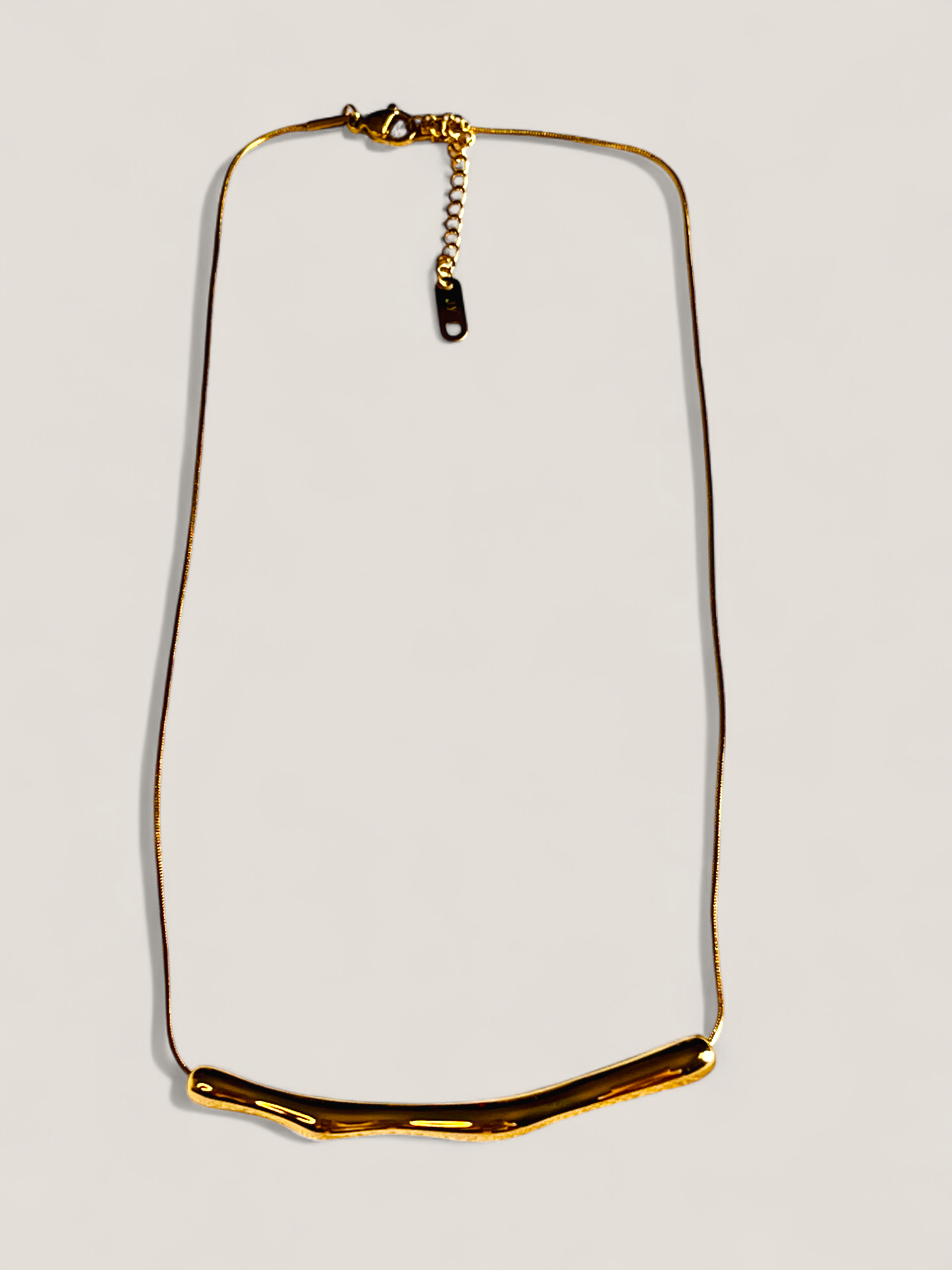 El collar Ícaro es un accesorio minimalista y sofisticada que destaca por su diseño fluido y moderno. Elaborado en acero inoxidable de alta calidad con acabado dorado, es la pieza perfecta para elevar cualquier look, desde el día a día hasta ocasiones especiales.