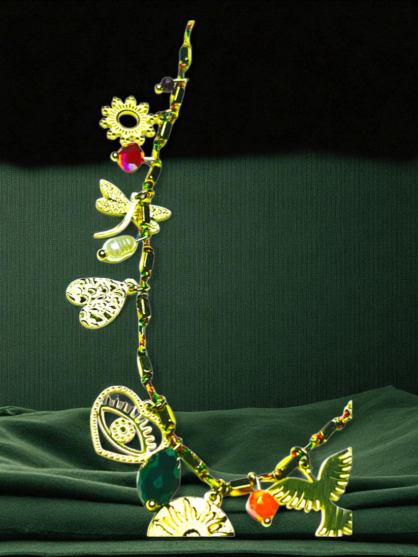 El Collar Incanto destaca por su combinación de acero dorado y cuerda, creando una pieza con textura y carácter. Los charms dorados inspiran un estilo natural y elegante, ideal para complementar looks casuales o más sofisticados.