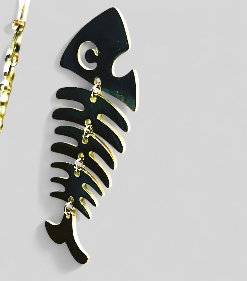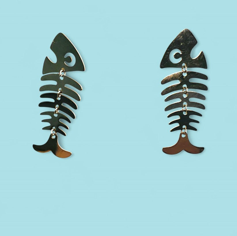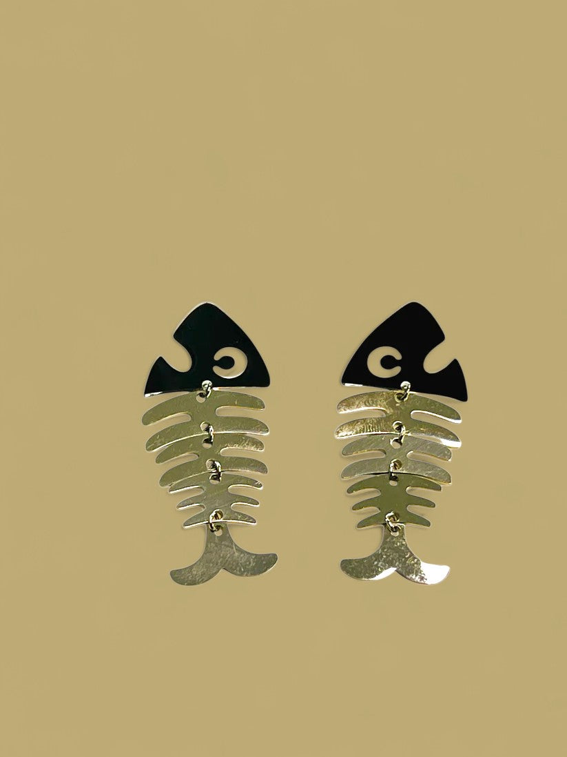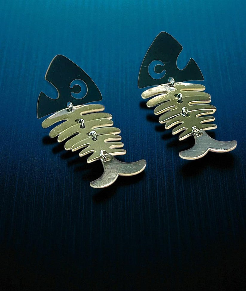 Los pendientes Raspa Platea tienen un diseño diferente y con mucho encanto. Están hechos en acero inoxidable plateado y su forma de raspa de pescado articulada les da un movimiento fluido y un toque divertido sin perder estilo.