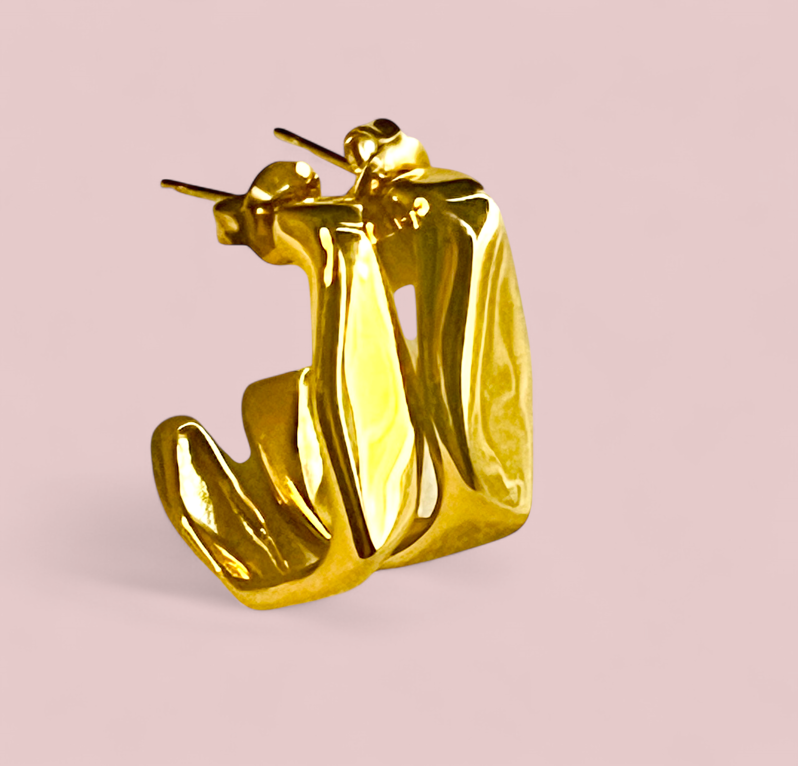 Fabricados en acero inoxidable de alta calidad, estos pendientes ofrecen un diseño único inspirado en formas orgánicas y curvas fluidas, que evocan sofisticación y modernidad.